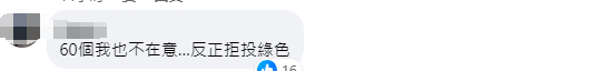 针对此事,有岛内网民表示,“60个我也不在意……反正拒投绿色。” ↓