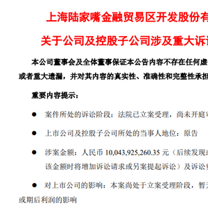 陆家嘴索赔超百亿元