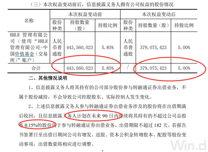 隆基绿能在今年3月关于HHLR转融通业务的公告中明确提及:HHLR的权益变动不属于减持,不会触及要约收购,但此次权益变动完成后HHLR不再为上市公司持股5%以上股东。