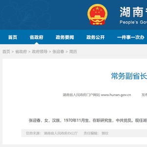 14日,据湖南省人民政府门户网站消息,张迎春同志已任省人民政府常务副省长。