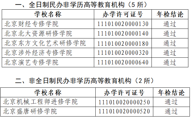 四、根据2022年度北京民办高等学校、民办非学历高等教育机构办学状况年度检查评估结果以及相关学校整改情况,2023年全市第一批具有招生资格的民办非学历高等教育机构共有39所。