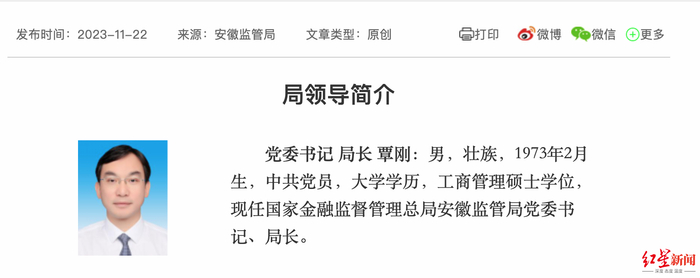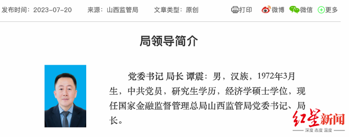 红星资本局注意到,仅在11月22日就有4位局长履新。分别是山西监管局党委书记、局长谭震,安徽监管局党委书记、局长覃刚,海南监管局党委书记、局长王吴庆,以及宁夏监管局党委书记、局长刘琦。