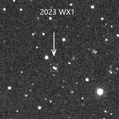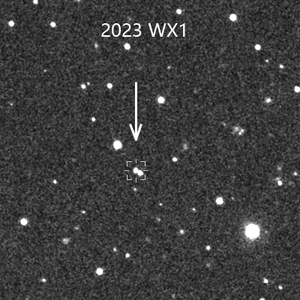 近地小行星2023 WX1和2023 WB2均于11月18日首次观测到,发现时的视亮度分别为20.8等和21.0等,视运动速度分别为0.513度/天和1.006度/天。累积多个观测站的观测数据后,2023 WX1和2023 WB2的初轨已经确定,分别为Apollo和Amor型近地小行星,其中2023 WX1与地球的最小轨道交会距离为0.0416天文单位,预估直径约170米,是一颗潜在威胁小行星(PHA)。