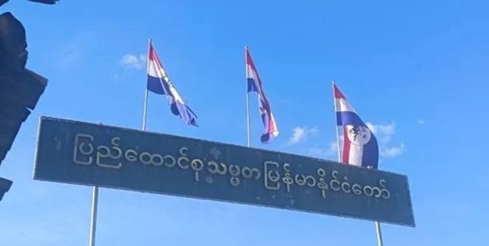 然而,就网传图片来看,招牌实际内容为“欢迎来到钦邦(Chinland)”,图上旗帜也并非中国国旗,而是代表缅甸少数民族武装组织钦邦民族阵线(Chin National Front, CNF)的旗帜。