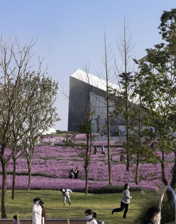 同时,在2021年成都星河WORLD·科创城公园建成并正式对外开放时,其充满几何设计感的科技建筑、绿意葱茏的草坪、浪漫花海及多彩活力区,已成为城西百万流量的网红公园;