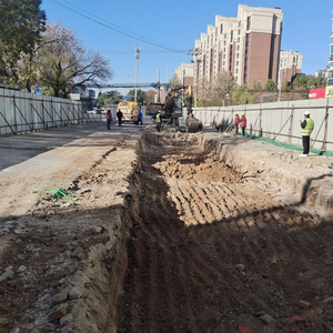 根据排水规划,清河中街负担的流域面积约54公顷。雨水方沟西向东修建,干线总长约900米。由于清河中街处于建成区,地下管线众多,主要有雨水、污水、雨污合流、给水、电力、电信、热力、低压燃气、中压燃气管道等。为节约项目投资、减少对现状管线的改移,避免管线开挖对现状树木的影响,经多次讨论协商,新建雨水管线设计位置定于道路北侧人行道及非机动车道内,将对周边原貌影响降到最低。