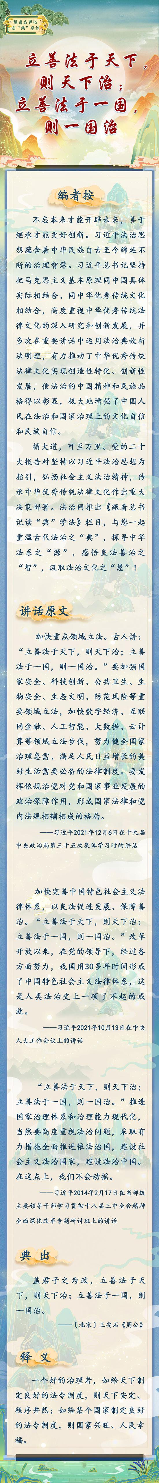 原标题:跟着总书记读“典”学法丨立善法于天下,则天下治;立善法于一国,则一国治