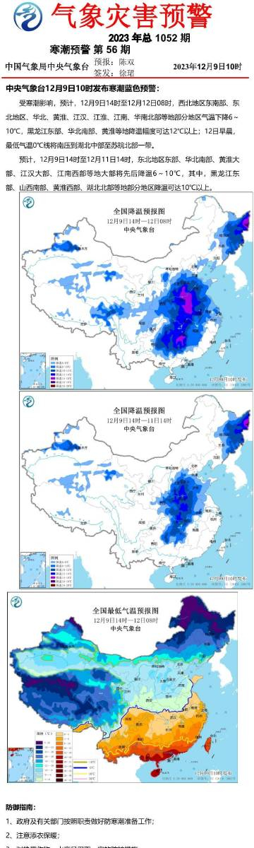 中央气象台12月9日10时发布寒潮蓝色预警(中央气象台)