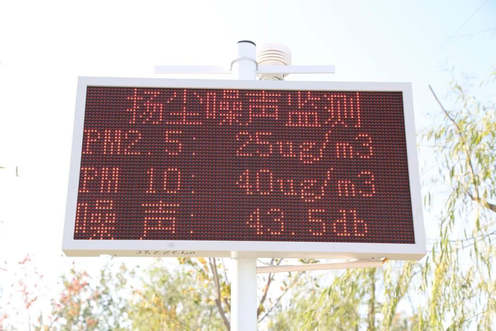 记者在崔家窑湿地公园现场看到,园内设置了扬尘噪声监测设备,实时监控空气质量和噪声分贝。