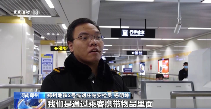 郑州地铁2号线刘庄站安检员 杨明坤:我们是通过乘客携带物品的特征、颜色、角度、密度,是否符合危险品的特征,然后进行识别。