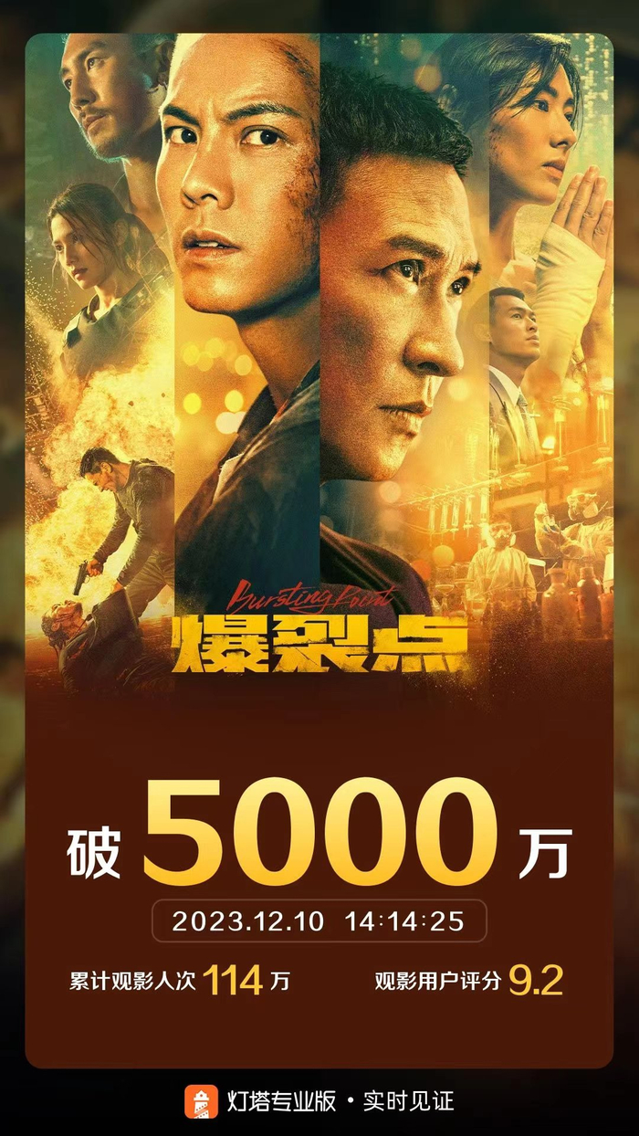 新京报讯 12月10日,据灯塔专业版,今日下午2时14分25秒,电影《爆裂点》票房突破5000万,累计观影人数114万。该片于12月8日上映。
