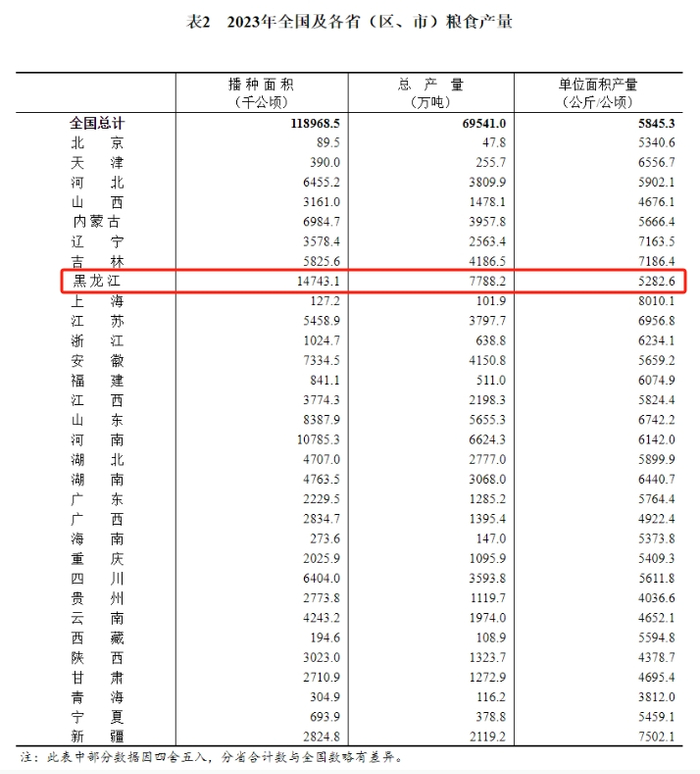 2023年粮食产量数据出炉!黑龙江省连续14年全国第一