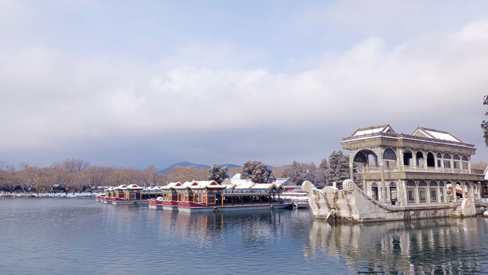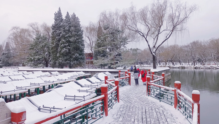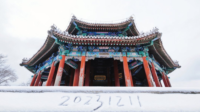 美!颐和园初雪如约而至!