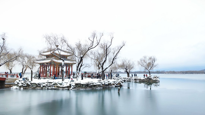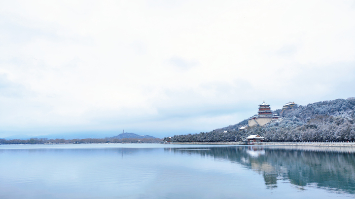 霎时间颐和园被白雪渲染