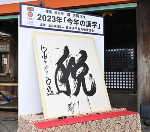据新华社报道,“日本汉字能力检定协会”12日在京都清水寺公布了2023年的年度汉字。清水寺住持森清范挥毫写下了“税”字。