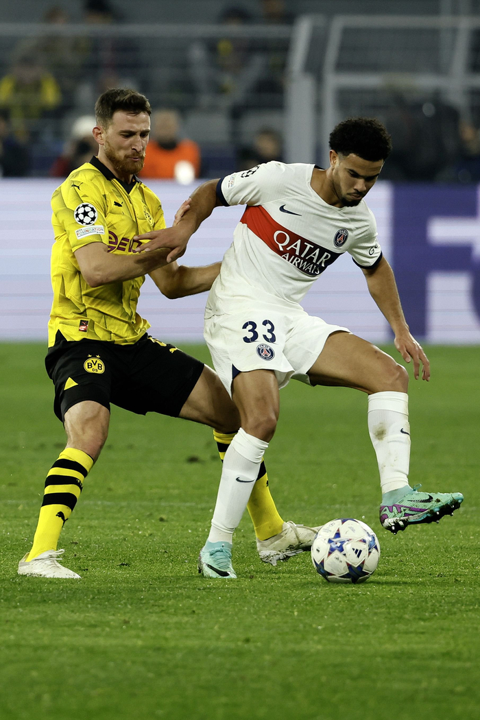 17岁的中场埃梅里(右)为大巴黎建功。 图/新华社
