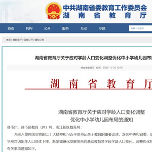 最近,人口大省湖南出台新政:有序组织幼儿园设并转撤。
