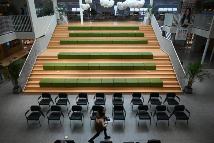 每到临近下班,成都京东方显示科技有限公司的员工梁新多少会有点着急:“得去图书馆二楼占位置了,晚了自习桌就满了。”梁新是双兴国际社区图书馆的常客,在二楼临近过道的角落,她有一个自己长期落座的位置,一杯奶茶、一本书、一副耳机,构成了她工作“8小时”之外的清闲时光。