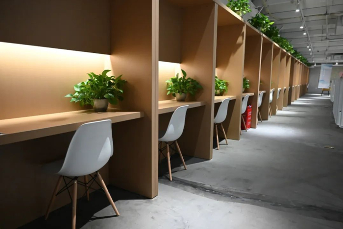 步入社区,一座大型图书馆最吸睛。那里面积足有2700平方米,4万册藏书琳琅满目,二层自习室的书桌旁,是一张张求知的年轻面孔。图书馆的显眼处,立着印有本月课程表的公示牌。这里平均每2~3天就会有一堂面向社区产业工人们的课程开讲,11月的课程有“互联网营销师”“短视频策划包装”“生活美学社——插花”“职场必修技能”“企业家讲座”……这里甚至还引入了学历提升平台,为产业工人们提供学历提升的机会与选择。