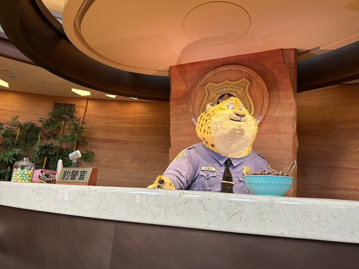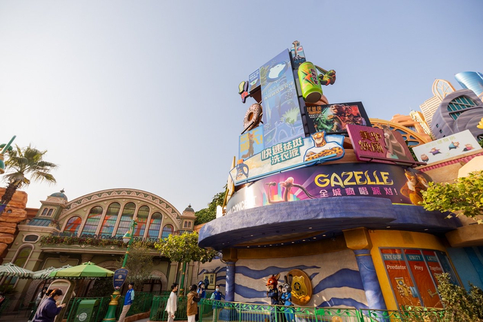 第一财经记者在现场看到,上海迪士尼疯狂动物城园区内主要还原了电影中的动物居民城区,其中最主要的大型项目是"疯狂动物城:热力追踪",这是一项无轨骑乘系统,其中运用机械人偶技术对"豹警官"、"牛局长"等做了人物还原。