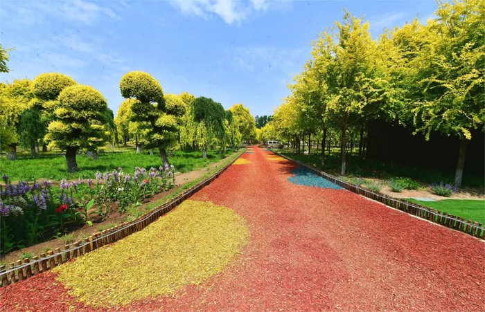 不仅如此,有机覆盖物还能保持土壤水分,调节土壤温度,对来年草坪返青也起到积极作用。据介绍,冬季有彩色有机覆盖物覆盖的土地,一般比正常土地提前返青半个月左右。目前,这种彩色有机覆盖物已经应用于城市副中心主城区一些主要路段、大运河森林公园等园林绿地,比如在新华西街爱琴海公园小微绿地栽植的常绿树树坑内,就铺设了这种覆盖物,绿树配彩“土”,观赏性更强,良好的园林景观效果广受市民群众的好评。