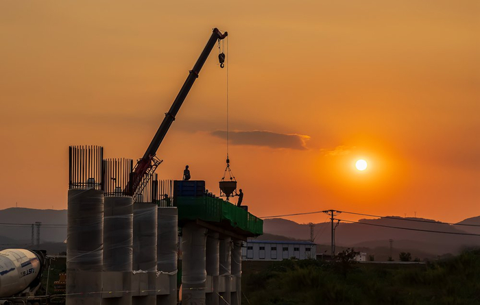 3月25日,云南省景洪市,夕阳下的施工现场。
