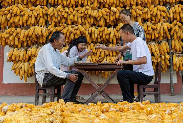 9月8日,丰都县南天湖镇,在秋收闲暇之余,父子俩下棋对弈。
