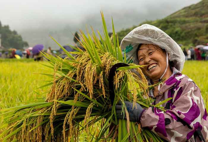 9月21日,丰都县包鸾镇,稻谷大丰收,农户乐开了花。