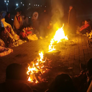 12月19日凌晨,积石山县高关初级中学的学生围坐烤火。受访者供图