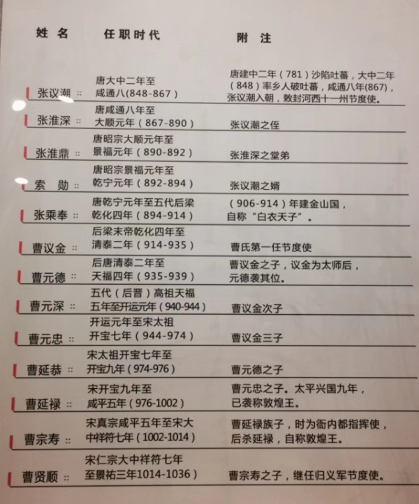 唐代归义军节度使一览表