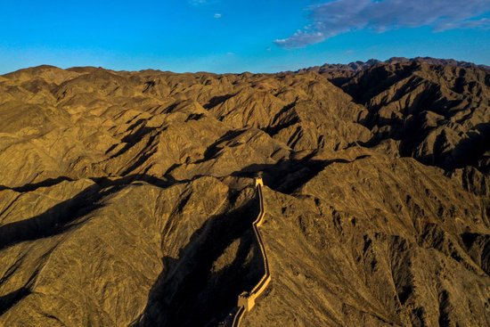 这是在甘肃省嘉峪关市拍摄的悬壁长城(无人机照片,2023年7月15日摄)。