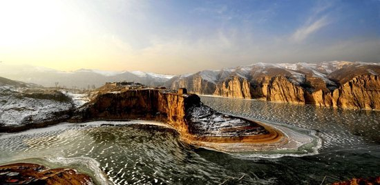这是位于山西和内蒙古交界处的黄河老牛湾冬日景色(2009年12月11日摄)。