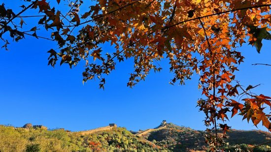 这是在天津市蓟州区拍摄的黄崖关长城太平寨段秋景(无人机照片,2023年11月6日摄)。