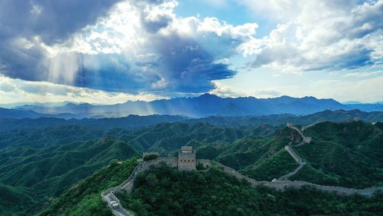 河北省迁西县榆木岭长城景色(无人机照片,2023年7月9日摄)。