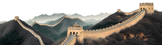 夕阳下的北京箭扣长城(无人机全景照片,2023年2月13日摄)。