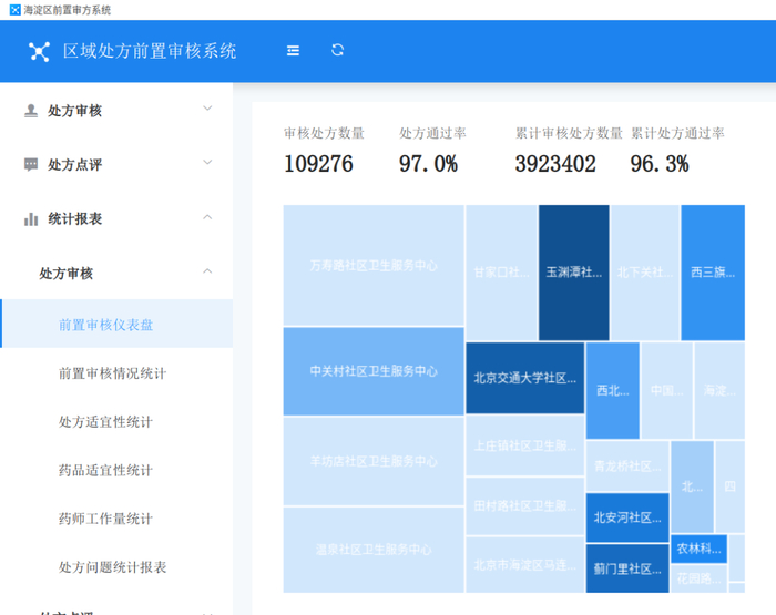 完成情况:在蓟门里社区卫生服务中心、青龙桥社区卫生服务中心、万寿路社区卫生服务中心等25家社区卫生服务机构上线处方前置审核系统,实时进行处方前置审核。