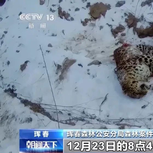据央视新闻报道,几天前,在吉林省珲春市的某个林场中,发现了一具东北豹被捕食后的残骸。经珲春市警方、东北虎豹国家公园管理局等部门联合勘察检验,确认为东北虎所为。