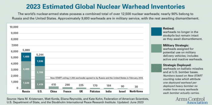 2023年6月,根据美国军备控制协会(The Arms Control Association)6月公布的数据显示,以色列的武器库里至少有90枚核弹头。