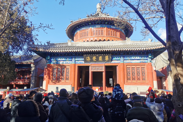 五彩的“吉祥轮”、灵巧的“太平燕”、有趣的“拉洋片”……大钟寺古钟博物馆院内格外热闹,观众流连在一个个摊位之间,体验老北京民俗,品尝传统美食,拍照留念,其乐融融。市民金先生和妻儿一起来博物馆过节,他说:“市集里有好多小时候逛庙会玩的游戏,尤其是拉洋片,不仅孩子特别感兴趣,也让我重温了童年的美好记忆。”