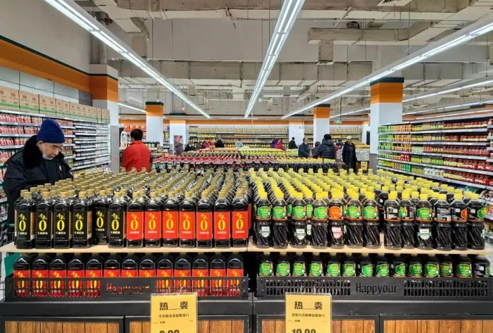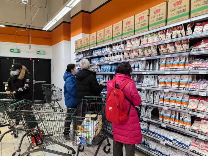 推着购物车准备去结算的一对夫妇,今天在新超市里也是收获满满“我们就住在这附近,小区周边只有一个小商店,现在这个超市开业了,而且特别大,商品分区也多,在里面可以逛很久,来一次所需要的东西基本上都能买齐。”