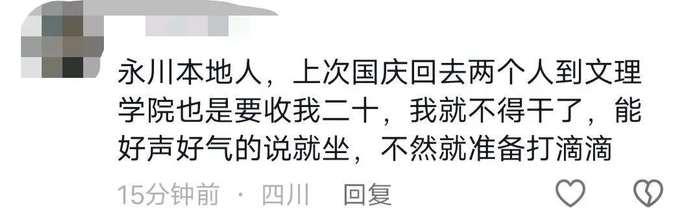任同学说,他将此事发布到网上后,评论区也有不少网友表示在永川区遇到过类似的事情,且在网络