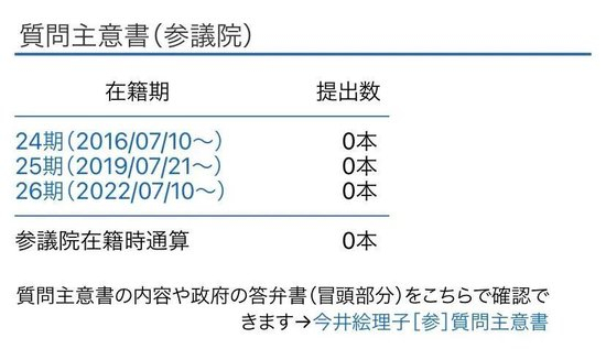 ·到2022年7月为止,今井提出的议案数为零。