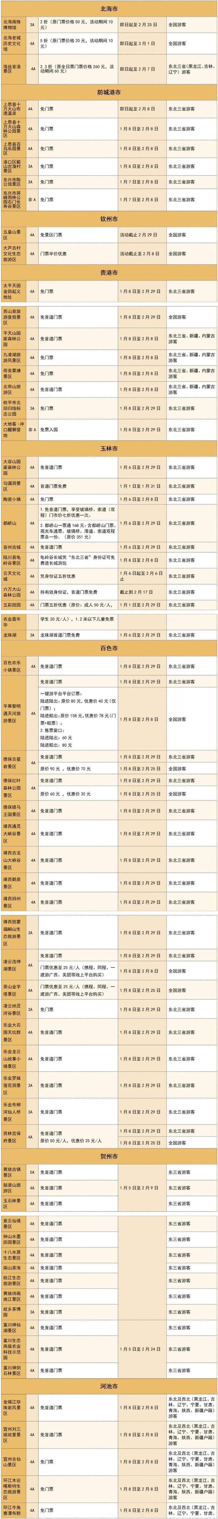 记者从广西壮族自治区文化和旅游厅获悉,柳州程阳八寨景区、桂林桂海晴岚、百色靖西通灵大峡谷景区等近两百家广西景区面向东北“老铁”推出免门票或打折优惠政策。此外,多家景区还有不少优惠措施面向全国游客!
