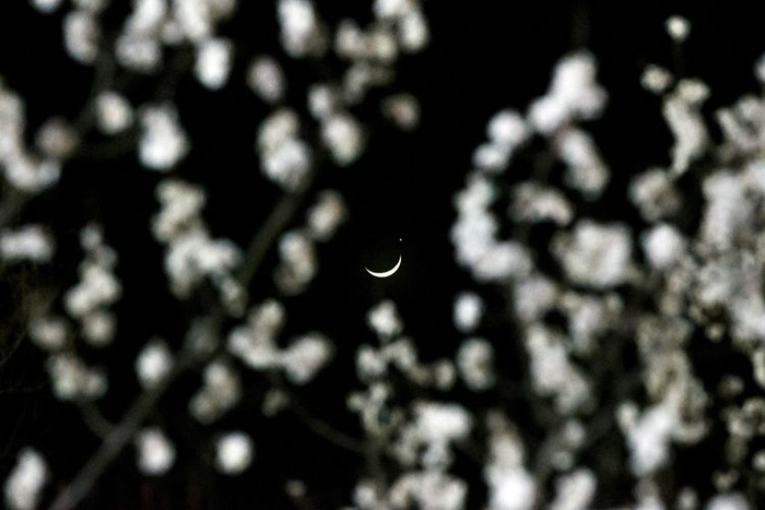2023年3月24日,北京天宫院,山桃花间上演月掩金星。