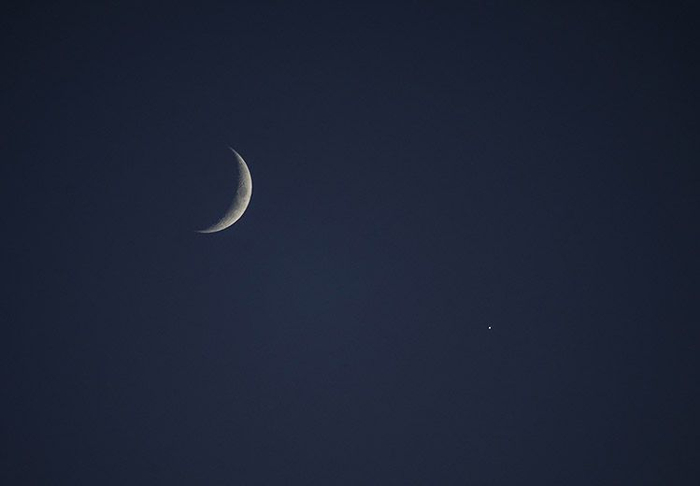 为什么金星伴月上演时,公众总会看到弯弯的月牙?由于金星总在太阳附近徘徊,所以月球与之相伴时,月相要么是农历月初的蛾眉月,窄窄的;要么是农历月末的残月,细细的。