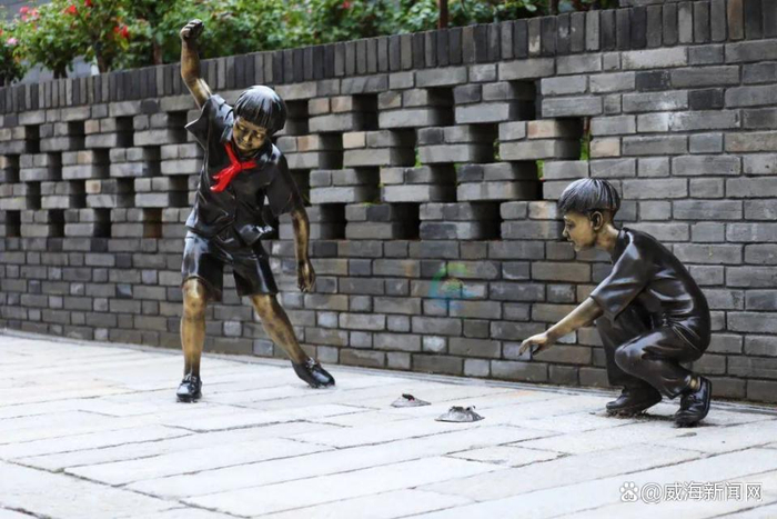 鼠牛虎兔、龙蛇马羊……憨态可掬的十二属相沿街从西向东排列,每个生肖下都写有专属年份的威海大事记。
