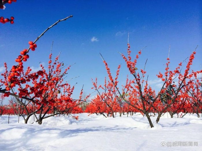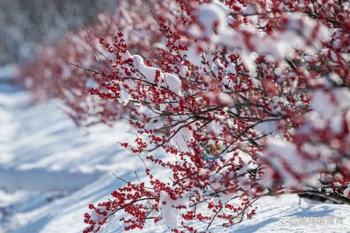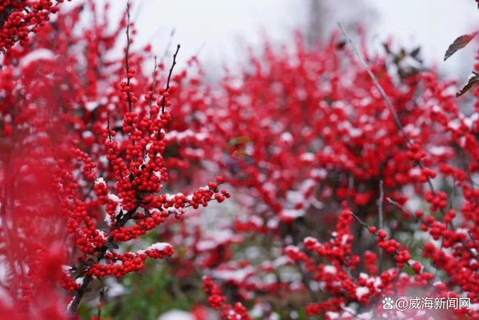 这如红宝石一般挂满枝头的“红果”仿佛凛冬的宠儿,正跟随着北风翩翩起舞,大地冰封的寂寥也挡不住它的红艳夺目。