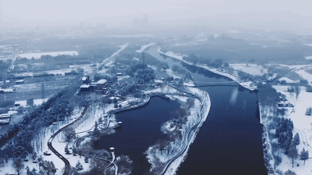 冬天大雪覆盖 华夏城 的远山近水,落在中式建筑上,白雪茫茫间夹杂着点点朱红、片片苍翠、静静伫立天地间,仿佛置身于唯美浪漫的油画世界。