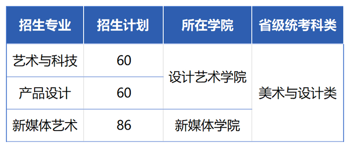 学校艺术与科技、产品设计和新媒体艺术专业采用省级统考成绩录取。