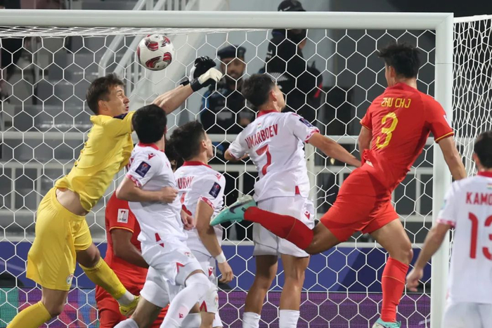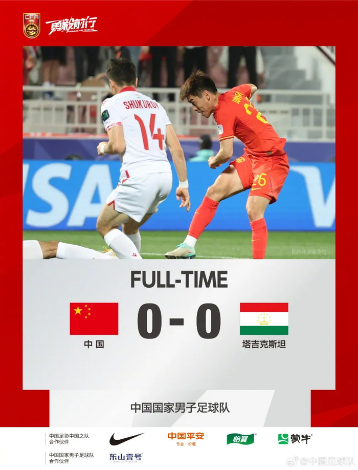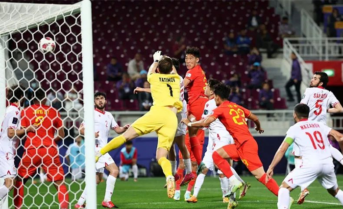 中国队本应该有机会1比0拿下比赛,度过平庸的大部分时间后,第80分钟年轻的申花中卫朱辰杰在角球进攻中,用一记漂亮的狮子甩头攻破了塔吉克斯坦队的球门。只不过,沙特主裁奥伊什经视频助理裁判提醒后,认为中国队有球员越位,取消了这粒进球。